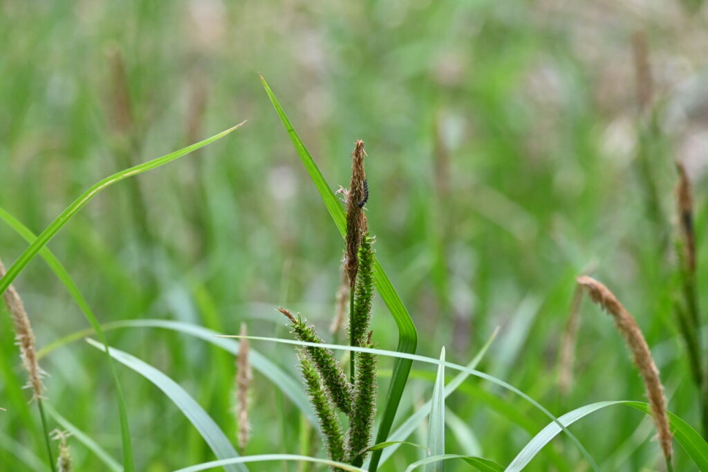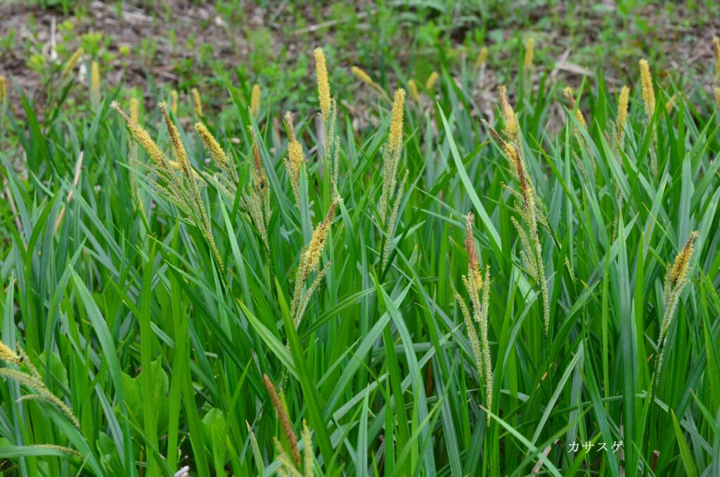 「笠菅(カサスゲ)」 丈夫で長い葉を笠(菅笠)に利用したことから名づけられた。