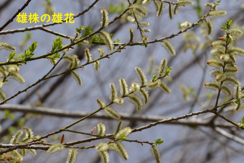 朝鮮半島原産。北海道から本州中部以北に分布する。主に河畔林の代表的な樹種として、河川の中流から下流にかけてよく見られる落葉小高木、または低木。雌雄異株で、日本では雄株のみが知られている。高さは3~4m程度。樹皮は黒灰色、縦に割れ目が入る。葉は狭長披針形で、葉縁は不明瞭な鈍鋸歯となる。若葉は縁が裏側に巻き、葉の裏に白い絹のような毛が密生しているのが特徴。若い枝も白い毛に覆われている。早春、葉よりも早く開花し、雄の花穂は短く大きく長さは2.5㎝ぐらい、雄しべは2。雌の花穂はやや細長く、柱頭は2裂している。