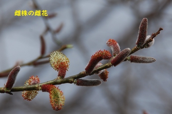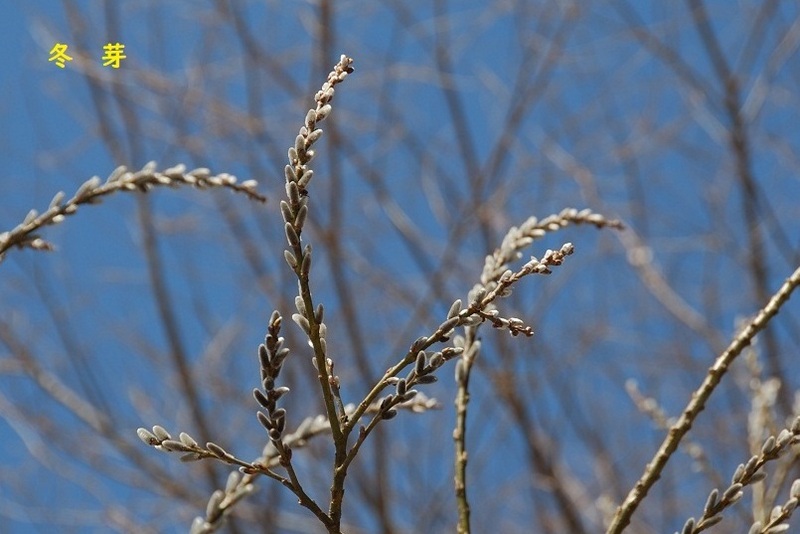 「絹柳(キヌヤナギ)」 花穂や葉の裏に見られる銀白色の絹のような毛に由来する。