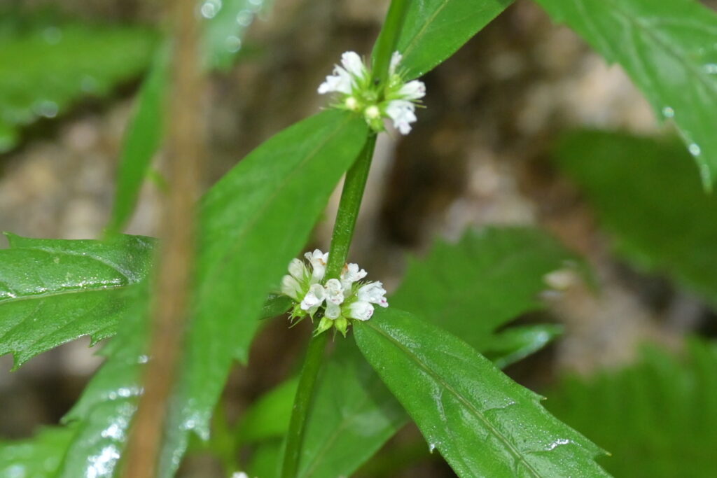 「小白根(コシロネ)」 小さい「シロネ」という意味で、同じシソ科の「シロネ」よりも草丈が低く、葉も細くて小さい。