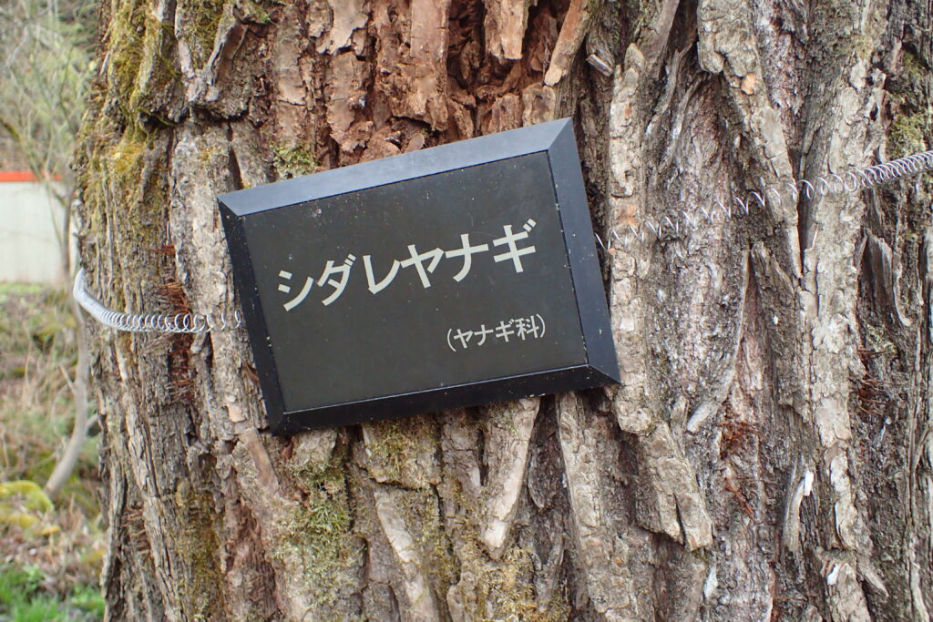 「枝垂柳(シダレヤナギ)」 枝が垂れ下がるように成長することから名付けられた。