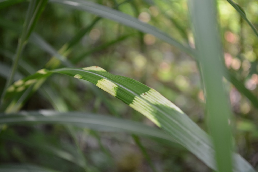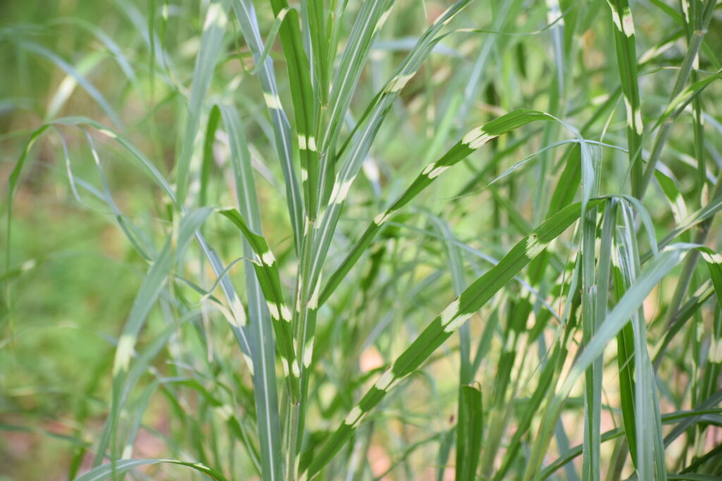 「鷹羽薄(タカノハススキ)」 葉に斑が入り、タカの羽の模様に似ることに由来する。